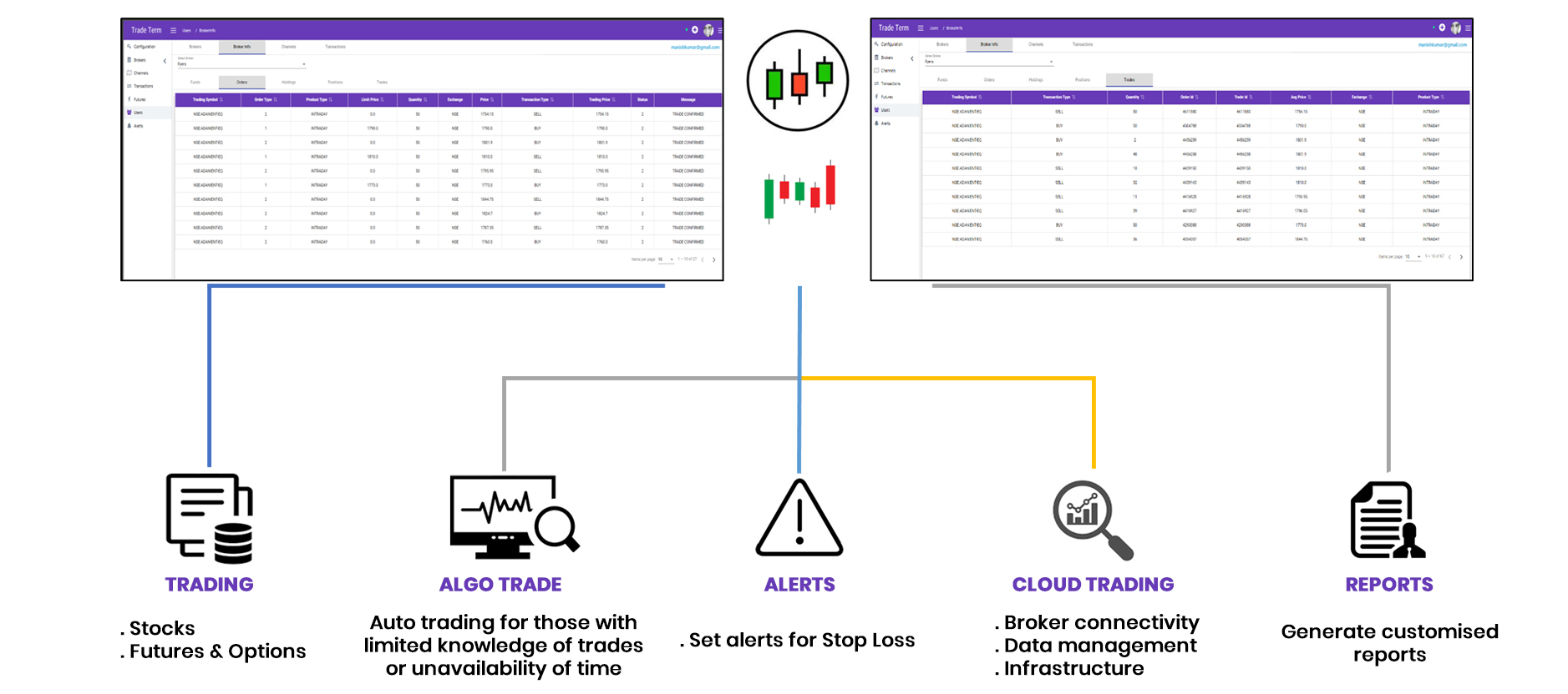 Our Financial Trading Bridge - TradeTerm is for every one of us who want to allocate a certain portion of their savings in stock market but do not want to try and analyze the markets, identify trades, and manage positions. They like the services of a professionally platform to trade for them. Trade term will be finding trades and executing them for you, while you can sit back & relax. Utilise your time to find better strategies, analyzing the results or work on your day job, etc.